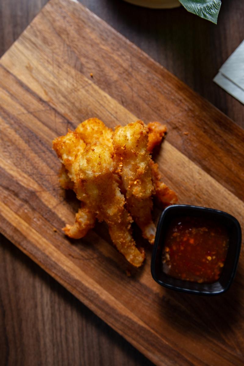 5 stk friterte scampi, serveres med Sweet Chilisaus